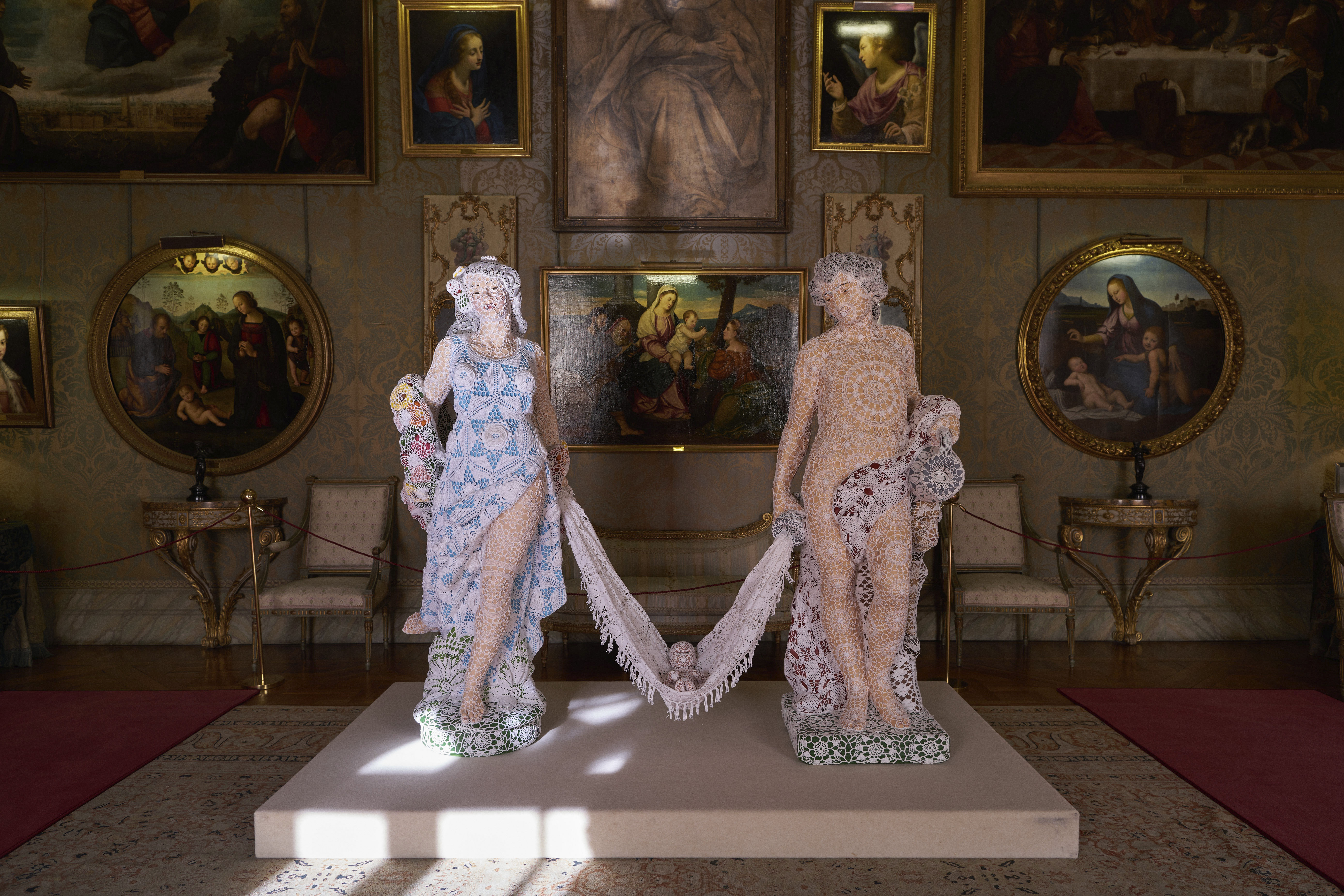 This is the first time that the artist brings her works to a grand inhabited palace, unlike her previous interventions in historic spaces such as the Palace of Versailles. This creates a special exchange—not only between her works and the palace but also between the artist herself and the Duke of Alba.